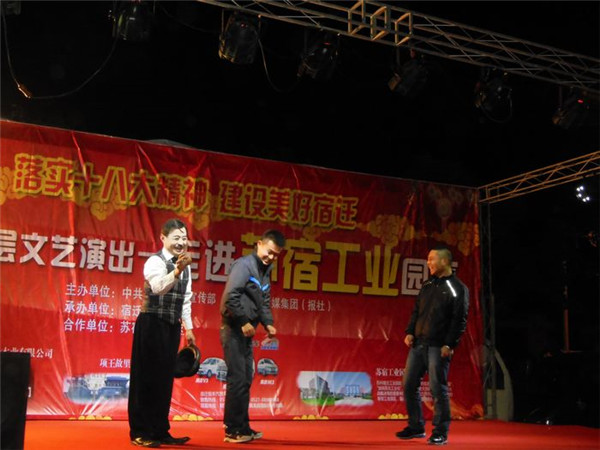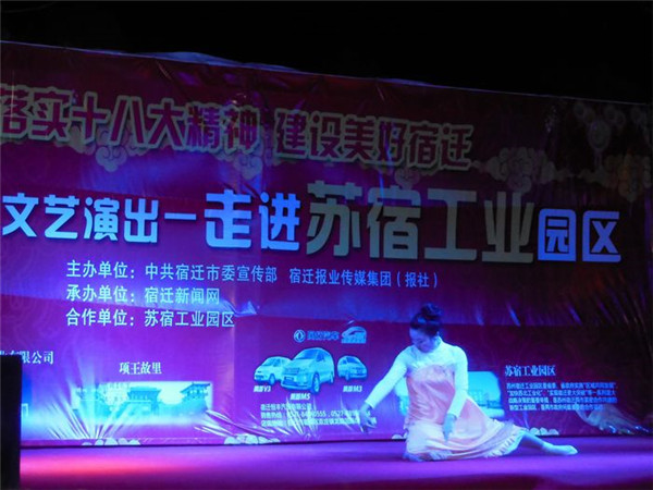 落實十八大精神 建設(shè)美好宿遷”服務(wù)基層文藝演出由市委宣傳部、宿遷報業(yè)傳媒集團(報社)主辦,宿遷新聞網(wǎng)承辦,旨在深入宣傳黨的十八大和市委四屆三次全體(擴大)會議精神,落實文化惠民措施,將走進全市100余個鄉(xiāng)鎮(zhèn)、社區(qū),將包括歌舞、雜技、曲藝、戲劇等內(nèi)容的百場精彩演出奉獻給廣大基層群眾,此次受園區(qū)邀請,專程赴園區(qū)公舍演出,為廣大工友及周邊居民帶來了一場精彩的文化大餐。