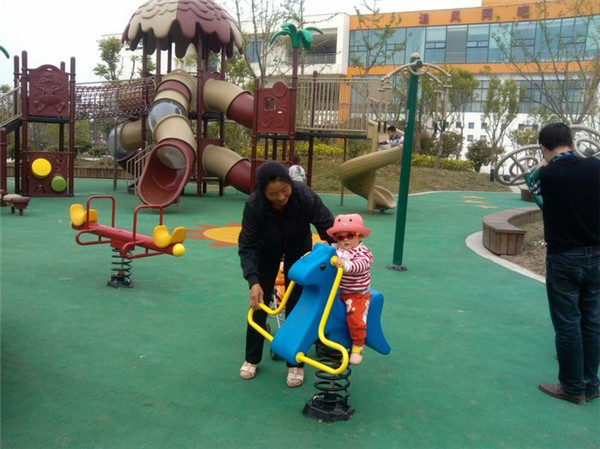 此次投入使用有健身單車、壓腿器、漫步機(jī)等健身器材,以及蹺蹺板、搖搖樂等兒童娛樂實(shí)施。其中,最引人注目的是一套大型兒童玩具,這在宿遷的社區(qū)健身器材建設(shè)中尚屬首例。整個(gè)健身休閑區(qū)域布局錯(cuò)落有致,色彩清新活潑,并鋪設(shè)塑膠地面,與周圍環(huán)境相得益彰。自投入使用以來,每天都吸引大批周邊居民來此鍛煉玩耍。