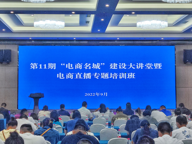 近日,由宿遷市商務局主辦的第 11 期“電商名城”建設大講堂暨電商直播專題培訓活動在泗洪開課。園區(qū)組織電商園四通科技、光速傳媒等五家企業(yè)十余人參加了培訓。