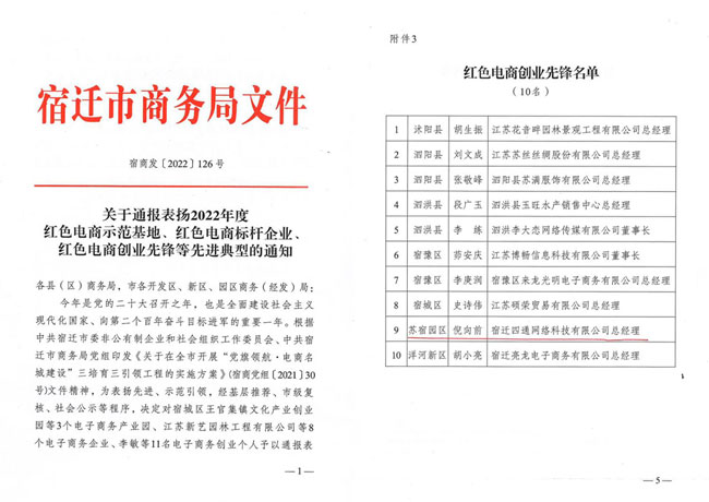 黨的二十大召開之年,市商務(wù)局為擦亮“電商名城”牌子,激發(fā)“電商名城”發(fā)展新動(dòng)能,12月15日,組織紡織服裝產(chǎn)業(yè)鏈黨建工作暨“黨旗領(lǐng)航·電商名城建設(shè)”推進(jìn)會。園區(qū)企業(yè)家四通科技董事長倪向前獲得“紅色電商創(chuàng)業(yè)先鋒”榮譽(yù)稱號。