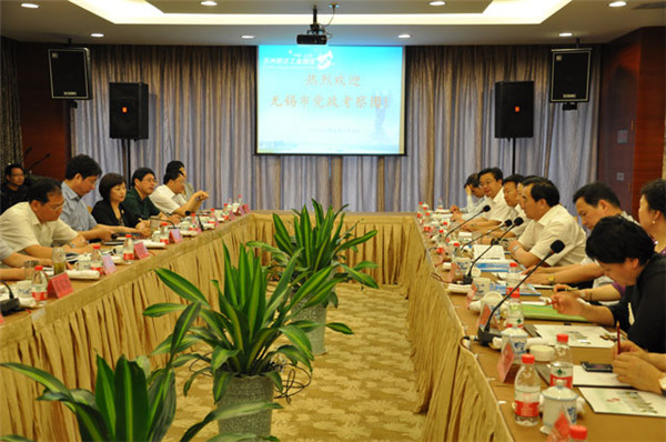 無錫黨政代表團實地觀摩了園區(qū)規(guī)劃展示廳、園區(qū)公舍、鄰里中心等地。