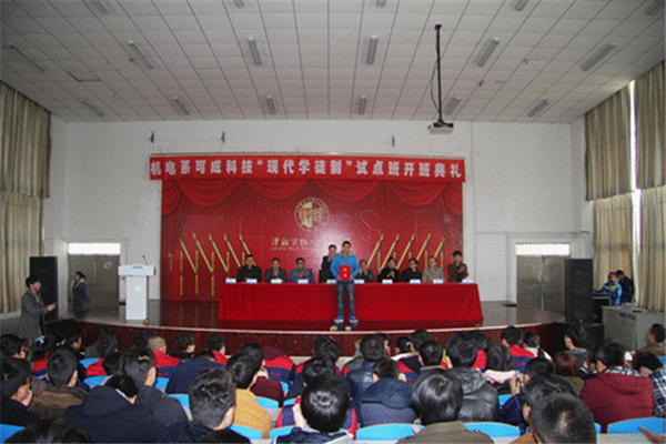 2014年,教育部印發(fā)《關(guān)于開展現(xiàn)代學(xué)徒制試點(diǎn)工作的意見》,要求各地積極開展“招生即招工、入校即入廠、校企聯(lián)合培養(yǎng)”的現(xiàn)代學(xué)徒制試點(diǎn),逐步形成具有中國特色的現(xiàn)代學(xué)徒制度。當(dāng)年年底,園區(qū)開始與宿遷澤達(dá)職業(yè)技術(shù)學(xué)院等周邊院校接觸,希望通過“招生即招工、入校即入廠、校企聯(lián)合培養(yǎng)”的現(xiàn)代學(xué)徒模式,幫助可成科技等園區(qū)企業(yè)培養(yǎng)機(jī)器人操作人員。今年3月下旬,“可成科技—澤達(dá)學(xué)院現(xiàn)代學(xué)徒制ABB機(jī)器人操作人員”試點(diǎn)班順利開班,首期39名在校大二學(xué)生經(jīng)過層層選拔進(jìn)班培訓(xùn)。