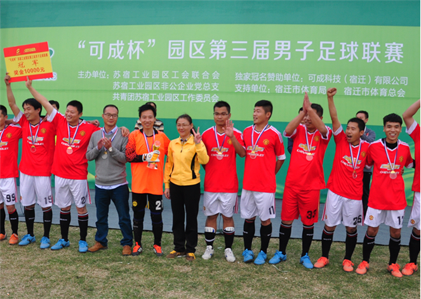 10月25日下午,備受矚目的“可成杯”園區(qū)第三屆男子足球聯(lián)賽圓滿畫上句號(hào),衛(wèi)冕冠軍可成科技隊(duì)力克群雄,再次捧起冠軍獎(jiǎng)杯。園區(qū)管委會(huì)隊(duì)、宿遷寶尊4S中心隊(duì)分獲亞、季軍,球員胡明波再次獲得“最佳射手”稱號(hào),榮膺“金靴獎(jiǎng)”。工委領(lǐng)導(dǎo)駱敏、戈亮,市足球運(yùn)動(dòng)協(xié)會(huì)秘書長(zhǎng)羊弘,可成集團(tuán)總務(wù)部專案經(jīng)理林春宏等領(lǐng)導(dǎo)和嘉賓出席閉幕式,并為獲獎(jiǎng)球隊(duì)及球員頒獎(jiǎng)。