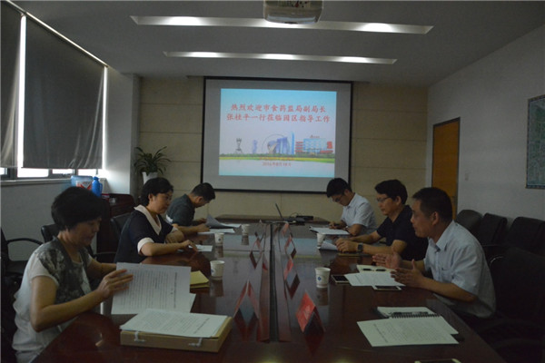 8月18日下午,市食品藥品監(jiān)督管理局副局長張桂平一行到園區(qū)調(diào)研文明餐飲創(chuàng)建工作。園區(qū)黨工委委員、管委會副主任戈亮參加了座談。